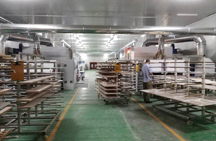 工藝要求 無溶劑UV底漆、水性UV底漆 產(chǎn)品種類 全屋定制、櫥柜、衣柜、木門、線條 產(chǎn)線數(shù)量 4條/廠 設(shè)備特色 無溶劑UV底、水性UV底漆,達到PU質(zhì)感的98%以上。 生產(chǎn)產(chǎn)能 UV底漆噴涂線(兩條):3600m2/8h (生產(chǎn)員3人/線)