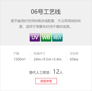 工藝要求 環(huán)保PU底漆、PU面漆 產(chǎn)品種類 實(shí)木復(fù)合門 產(chǎn)線數(shù)量 4條 設(shè)備特色 帶回收的環(huán)保PU漆及立體干燥房,門扇雙面噴漆+立體干燥。 生產(chǎn)產(chǎn)能 600套/天 廢氣處理 干式過濾+催化燃燒處理系統(tǒng) -