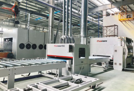 產(chǎn)品種類 外墻保溫裝飾一體板(氟碳漆、水包水多彩漆、真石漆、水包砂) 產(chǎn)線數(shù)量 基板處理生產(chǎn)線1條、氟碳涂裝生產(chǎn)線1條、自動(dòng)噴涂線2條 設(shè)備特色 整線分段自動(dòng)化,各段自動(dòng)化完成 生產(chǎn)產(chǎn)能 氟碳漆、水包水多彩漆200萬(wàn)平方米 油漆干燥方式 連線豎式折葉干燥隧道 生產(chǎn)人員數(shù)量 22人 廢氣廢水處理 光氧處理、水過(guò)濾循環(huán)處理 -