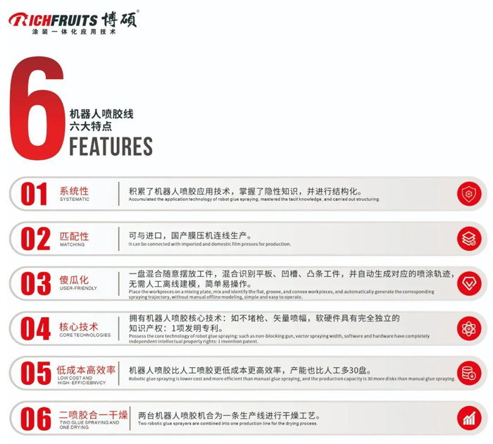 博碩機(jī)器人噴膠線智控系統(tǒng)的應(yīng)用,助力家居類企業(yè)智能制造升級迭代;機(jī)器人噴膠具有高效率、噴膠精度高、膠水能耗低,生產(chǎn)數(shù)據(jù)后臺可視化,智控系統(tǒng)操作簡單易上手等特點,是家具類企業(yè)采用機(jī)器人噴膠作業(yè)的不二選擇。