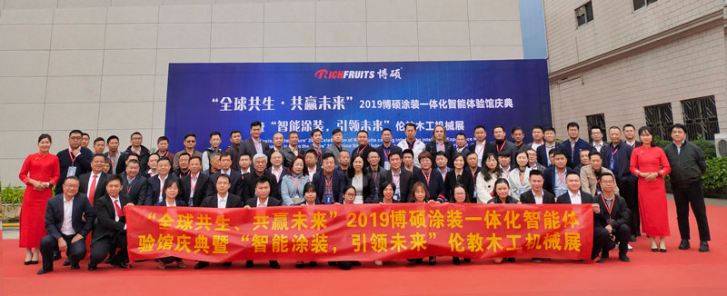 2019年12月5日,“全球共生,共贏未來”2019博碩涂裝一體化智能體驗館慶典在博碩涂裝一體化智能體驗館正式啟動。順德區(qū)科技局副局長吳慶強、全國工商聯(lián)家具裝飾商會執(zhí)行會長張傳喜、廣東省定制家居協(xié)會會長索菲亞副總裁張挺等80多名設備與涂料圈兒的嘉賓們共同出席此次活動。