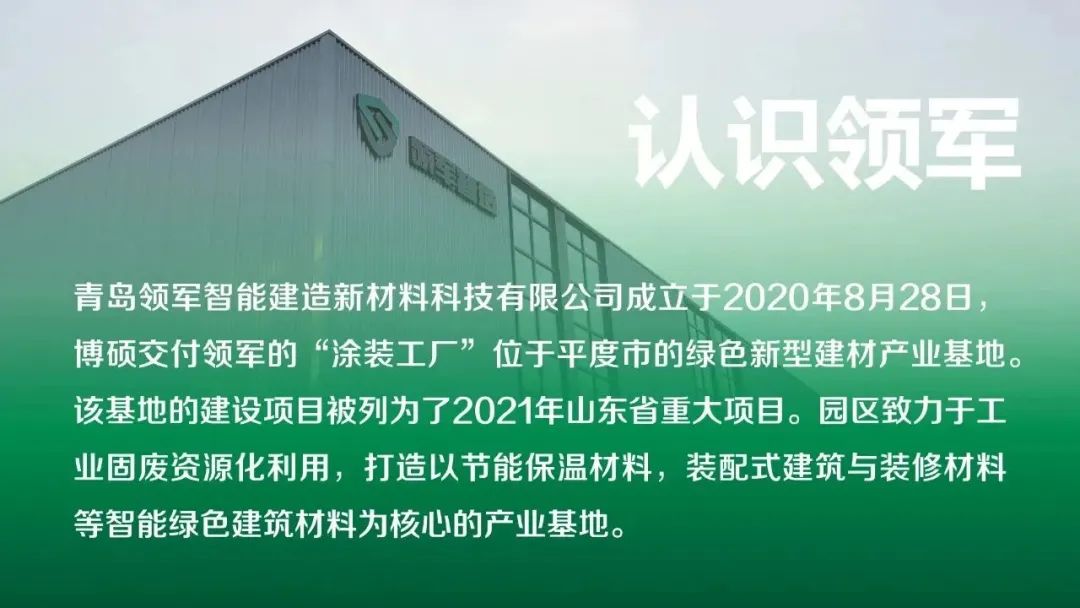 隨著博碩涂裝一體化解決方案2.0的提出,博碩“交付一個涂裝工廠”的能力,以及在大家居、大建材領(lǐng)域的應(yīng)用越來越受到關(guān)注——而青島領(lǐng)軍智造恰好是這么一個結(jié)合了博碩涂裝一體化解決方案——交付您·夢工廠的企業(yè),它將會是我們更加深入了解這一具有行業(yè)引領(lǐng)性解決方案的絕佳切入點。