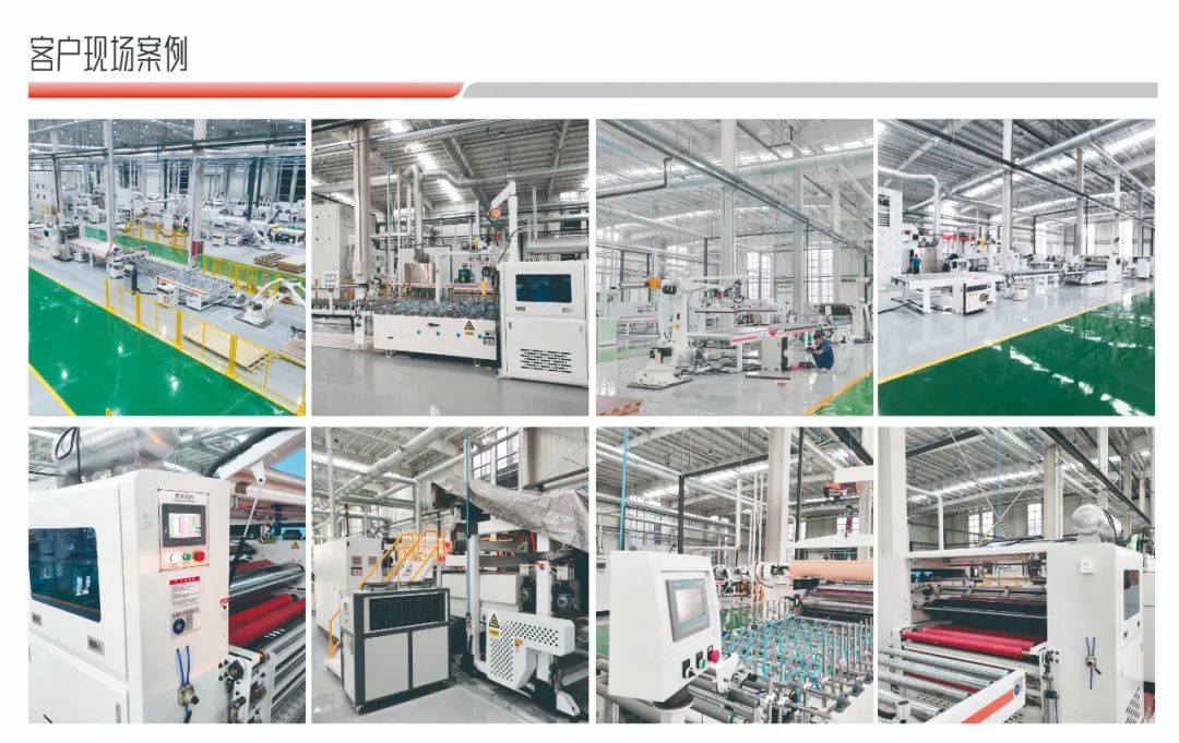 可片材、可卷材混合生產(chǎn)。通用PET、PETG、PP、PVC、CPL、防火板、亞克力、鋁箔、SPC等飾面材,利用PUR膠水均勻平貼或包覆到板材表面。 通用于包覆種類的產(chǎn)品,比如:硅酸板、水泥纖維板、門芯板多層墻板等材料進行PUR膠水涂布后包覆各種柔性貼材。