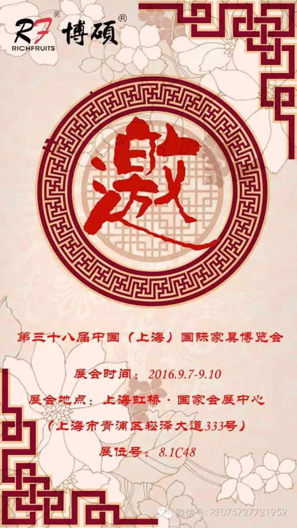 我司作為與各大家具品牌合作的設(shè)備供應(yīng)商也將參與第三十八屆中國(guó)(上海)國(guó)際家具博覽會(huì)!