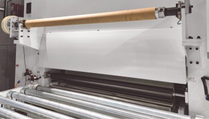 利用循環(huán)膜,將輥涂油漆后的板面進(jìn)行膜壓,實(shí)現(xiàn)高光、啞光、膚感、3D浮雕、鐳射等特殊表面效果。