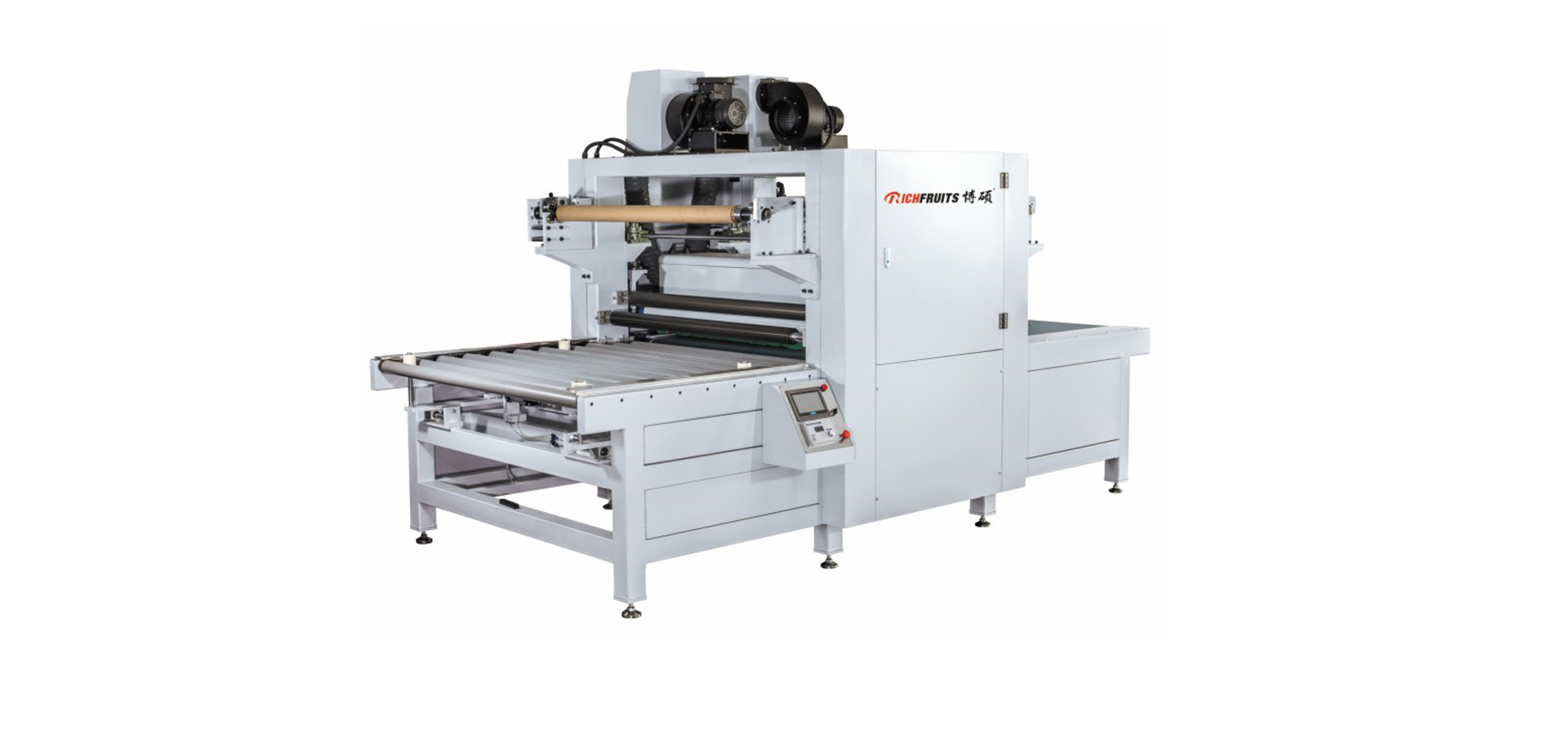 利用循環(huán)膜,將輥涂油漆后的板面進(jìn)行膜壓,實(shí)現(xiàn)高光、啞光、膚感、3D浮雕、鐳射等特殊表面效果。