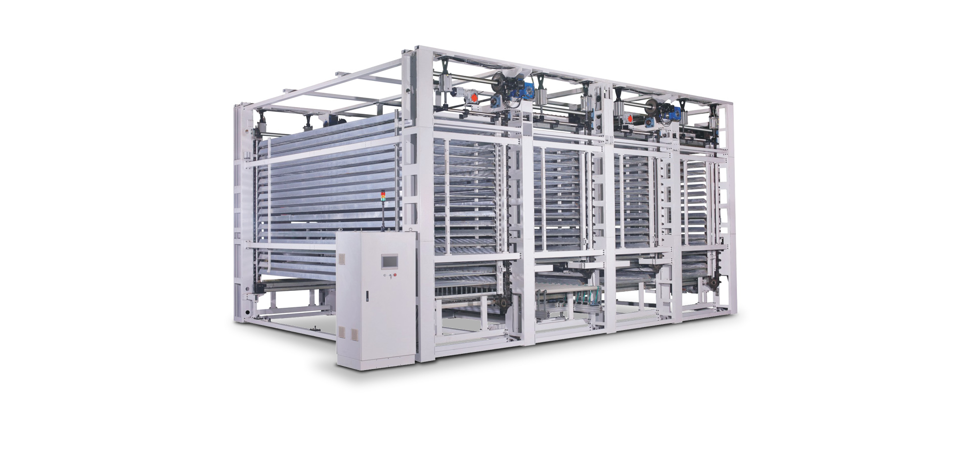 利用機(jī)器上部空間,采用立體式結(jié)構(gòu),適用于規(guī)格較為統(tǒng)一的實(shí)木家具、實(shí)木復(fù)合門(mén)、美式櫥柜、套房家具、衛(wèi)浴柜、展示柜、工藝品、裝飾板等板式工件,進(jìn)行自動(dòng)化噴漆后的長(zhǎng)時(shí)間(30~120分鐘)的待干,實(shí)現(xiàn)在線連續(xù)干燥作業(yè),噴漆后的長(zhǎng)時(shí)間待干能夠兼顧流平性、光滑性和漆膜干燥的性能。