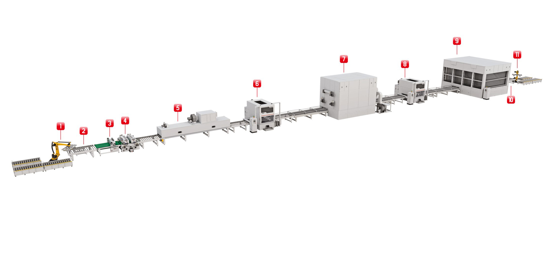 預(yù)輥實(shí)色水性中涂,再通過兩次水包水薄噴待干的工藝配合,一來將色差降至最低,二來避免底層漆膜水份透不來形成假干的現(xiàn)象。后段配平鋪式立體干燥房,避免了厚噴漆膜流掛的現(xiàn)象,同時(shí)實(shí)現(xiàn)油漆快速干燥,將能耗降至最優(yōu)。